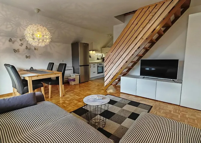 Gostje lahko hitro dostopajo do Aquaparka Bohinj, ki ni zelo daleč od tega apartmaja, in Slapa Grmecica, ki je oddaljen le 7 minut hoje. Mesto se nahaja le 4 km stran, letališče Brnik pa je 60 km od apartmaja velikosti 50 m².